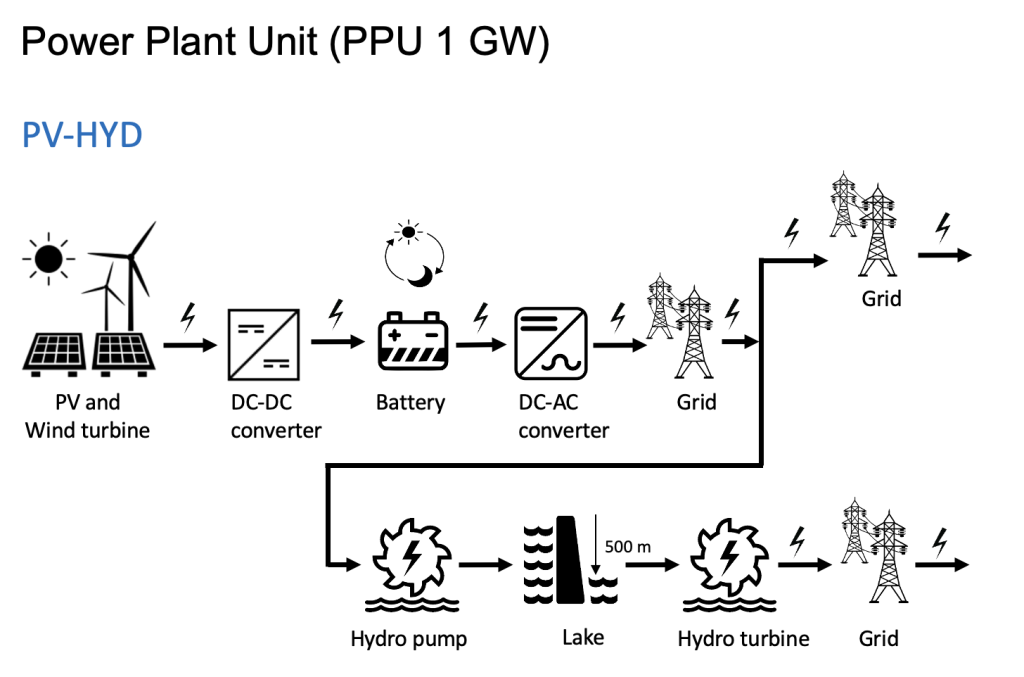 • Photovoltaik mit Pumpspeicher-Wasserkraftwerk (PV-HYD)